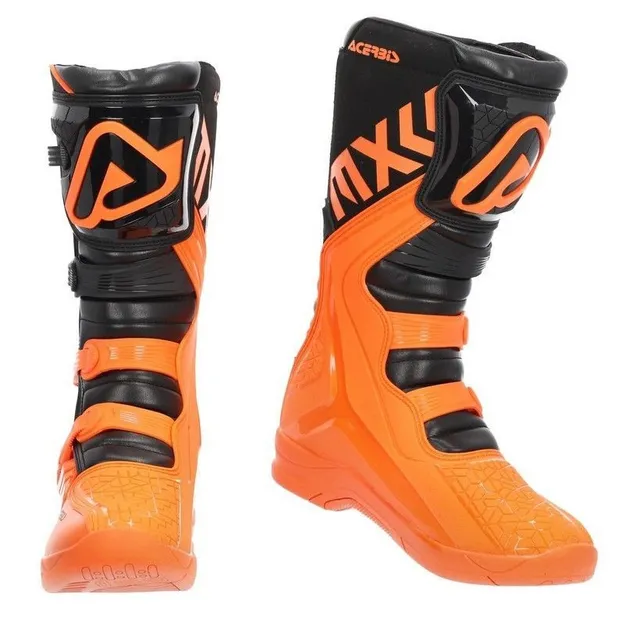 La suela de alta resistencia ofrece excelente agarre sobre estribos y superficies irregulares, mientras que su interior acolchado aporta comodidad incluso en jornadas largas de uso intensivo. El diseño negro/naranja aporta un estilo llamativo propio de la gama off-road de Acerbis.